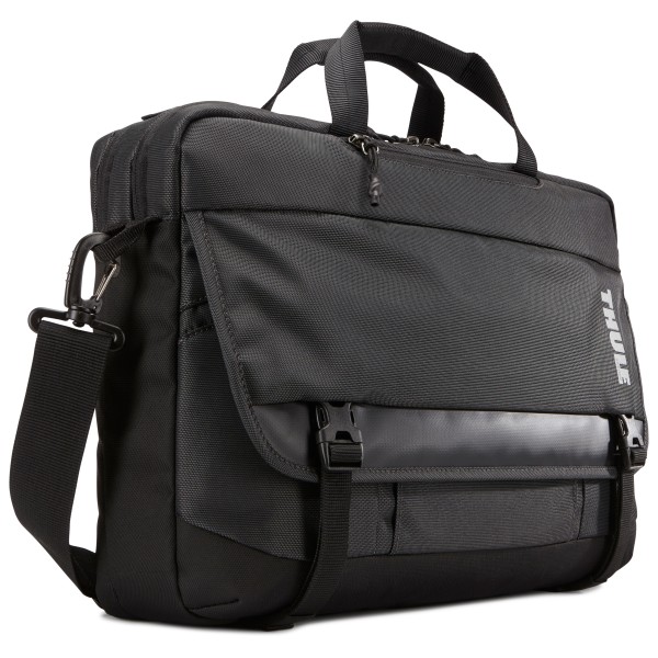 - Peut accueillir un ordinateur portable 15" et une tablette 10.1". - Des pochettes matelassées et doublées protègent les appareils électroniques des chocs et des éraflures. - Pochette facile d'accès avec doublure souple pour ranger et protéger votre smartphone, vos papiers ou vos clés en toute sécurité et toujours à portée de main. - Panneau d'organisation à chargement avant avec poches rembourrées, attaches pour stylo et espace de rangement pour des accessoires. - Compartiment central séparé pour ranger vos documents et effets personnels avec deux grandes poches. - Pochette fourre-tout cachée sous le rabat avant pour ranger et accéder rapidement à vos objets du quotidien. - Tirettes de fermeture éclair pour un accès aisé et rapide. - Matière Oxford bicolore, robuste et imperméable. - Épaulière rembourrée et amovible avec ajusteurs à double glissière. - Sangles de compression à la base du sac pour ranger une veste. - Pochette sur le panneau arrière pour un accès rapide à vos dossiers et/ou magazines. - La lanière de sécurité permet de fixer le sac à des bagages à roulettes pour voyager sans se fatiguer. - Logo Thule réfléchissant.